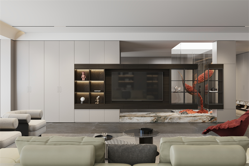 比如說,實木柜體搭配玻璃柜門,實木的沉穩(wěn)厚實遇上玻璃的通透輕盈,層次感瞬間拉滿,空間也顯得更為敞亮;又或是巖板柜面搭配金屬包邊,硬朗冷峻的風(fēng)格撲面而來,格調(diào)一下子就上去了。