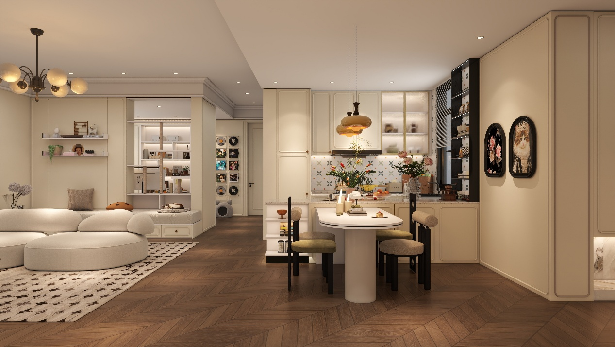 羅亞全屋定制深諳 Z 世代對(duì) “氛圍感” 的追求,其2025年春季新品香頌系列,仿佛將香榭麗舍大街的璀璨夜景濃縮于方寸之間,供我們欣賞、享受線(xiàn)條、色彩沖擊之美。在其中羅亞將法式美學(xué)的精髓提煉為三大設(shè)計(jì)語(yǔ)言:法式線(xiàn)條勾勒空間的優(yōu)雅輪廓,天然布藝增添觸感的柔軟與溫度,奶油色系則奠定整體的溫潤(rùn)基調(diào)。三者交織,共同營(yíng)造出精致格調(diào)、復(fù)古典雅又滿(mǎn)含浪漫氛圍的空間意境 。