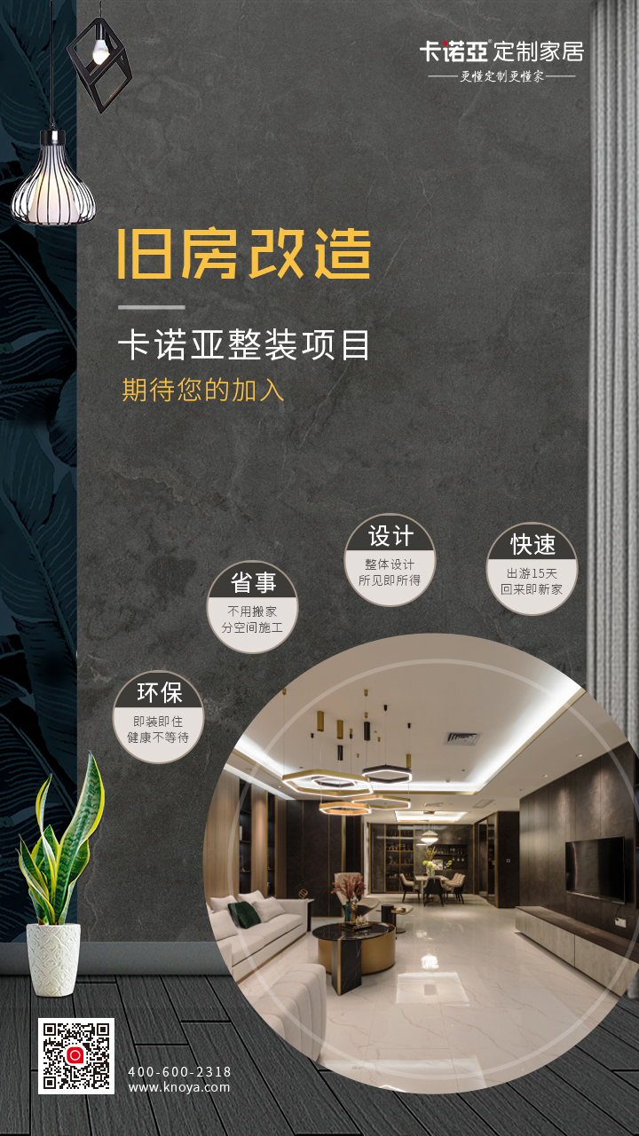 “卡諾亞”,早在2020年1月10日舉行的“凝心聚力,智造未來”卡諾亞定制家居2020迎新年會上,公司董事長兼總經(jīng)理程國標先生在致辭中就曾經(jīng)提到卡諾亞將全面推進整裝、拎包入住、舊房翻新、大宗采購等業(yè)務(wù),從而提升企業(yè)和經(jīng)銷商的利潤空間,而突如其來的疫情則加速了卡諾亞在舊房翻新領(lǐng)域的投入與布局,并根據(jù)房主需求,為其量身定做局部改造+全屋空間定制的方案,推動舊房煥新顏。根據(jù)反饋,這種改造方式已經(jīng)得到業(yè)主的一致認可。